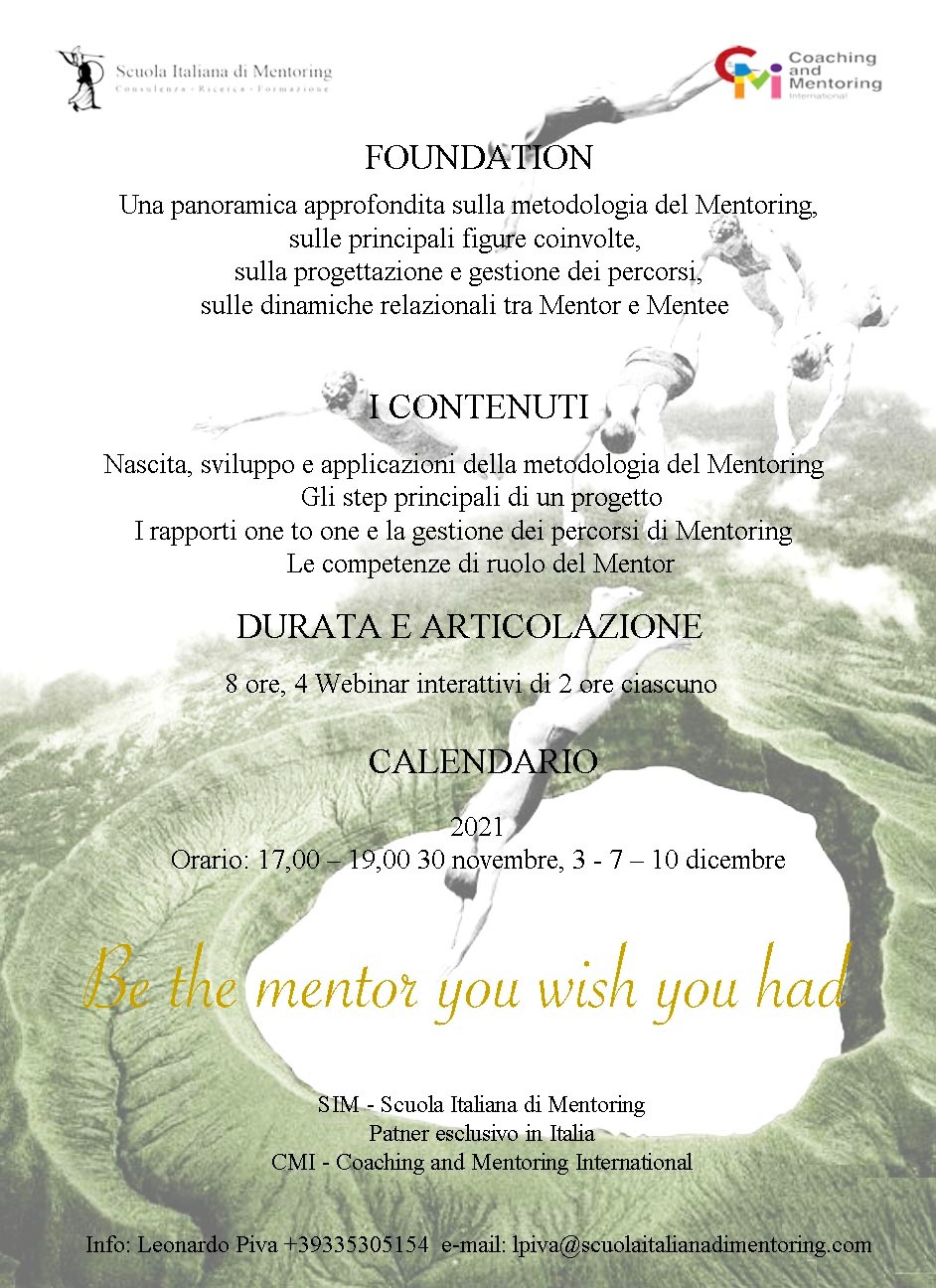 Iscriviti!! https://www.scuolaitalianadimentoring.com/evento/corso-foundation-webinar/